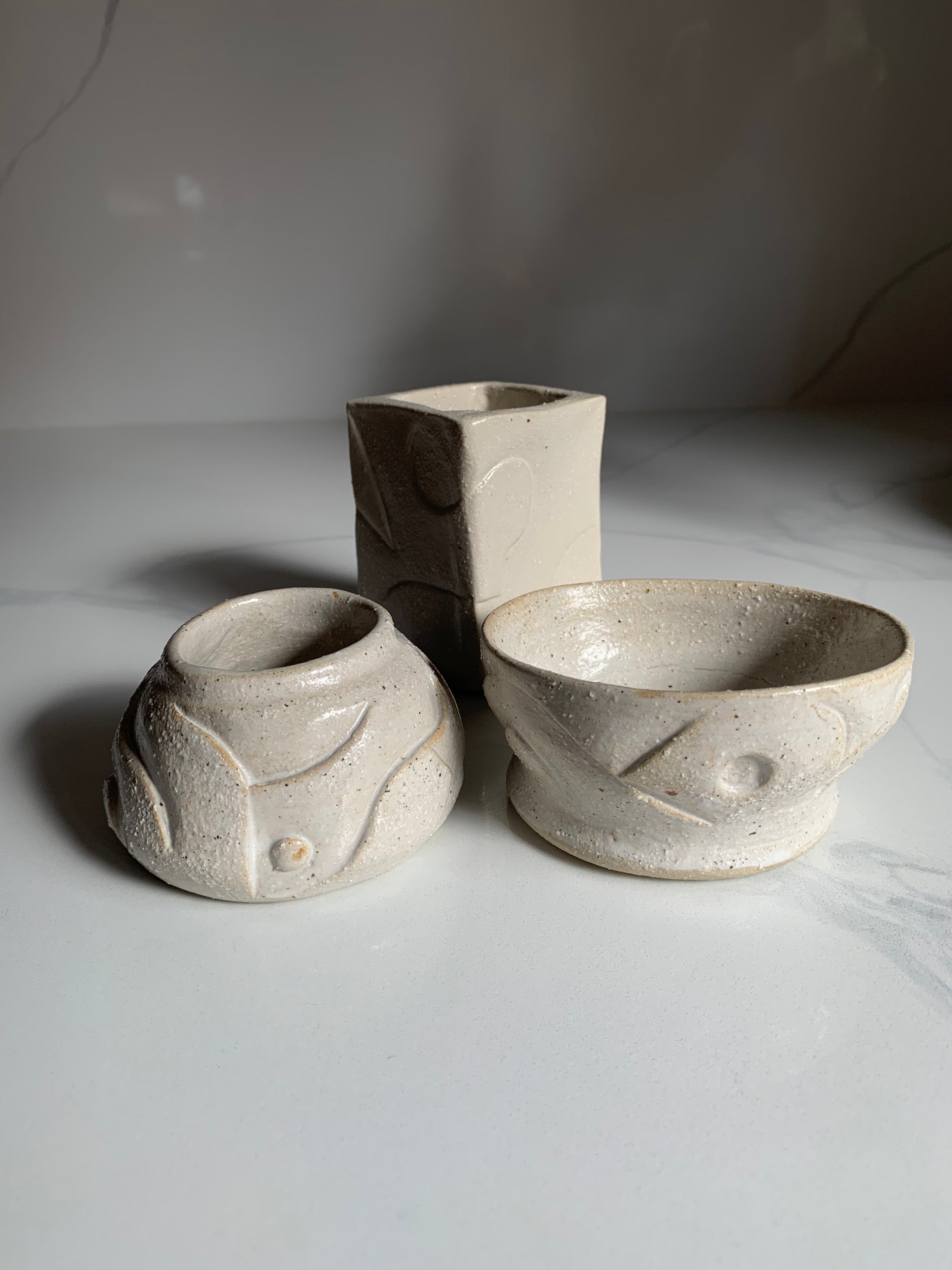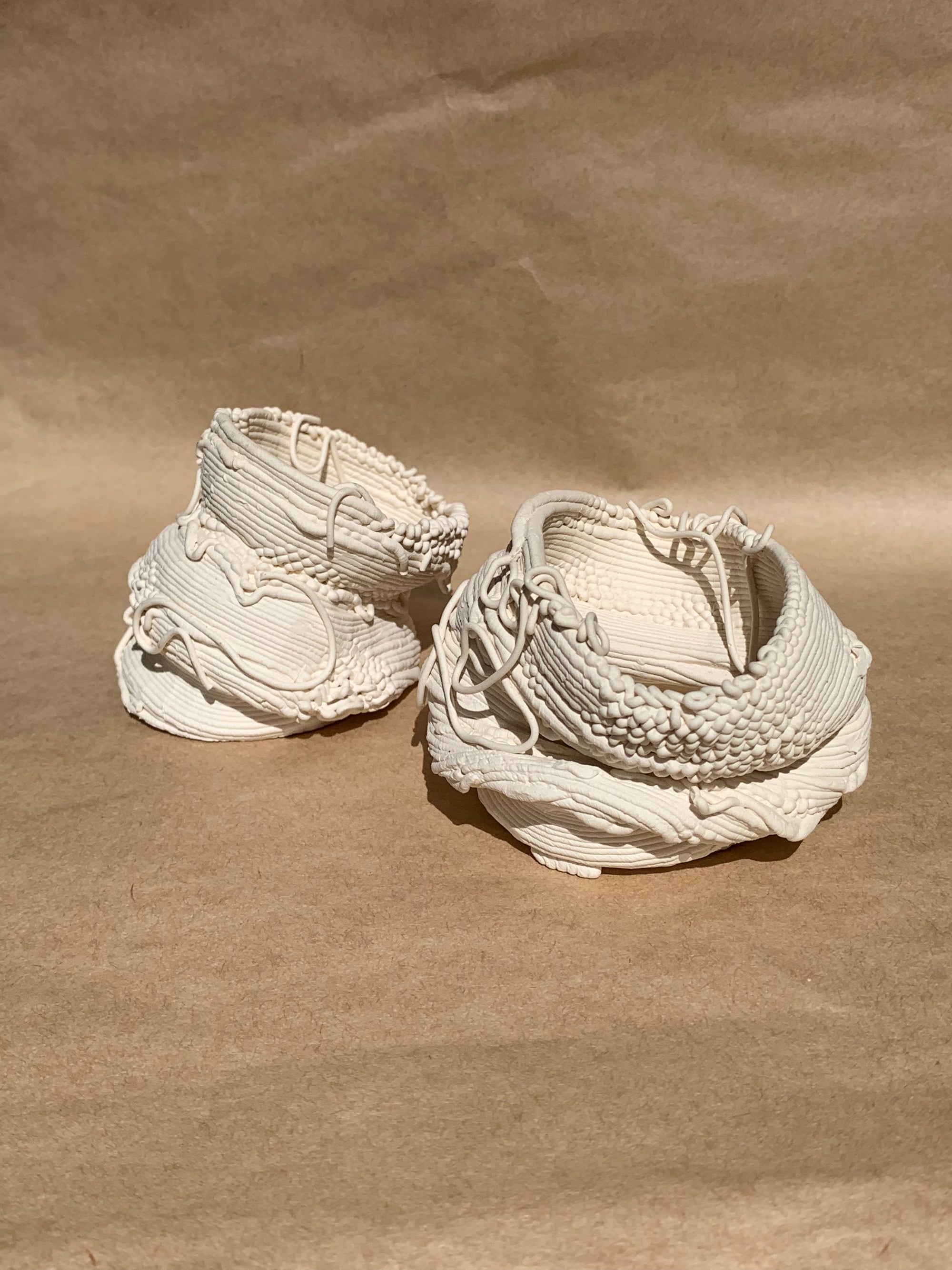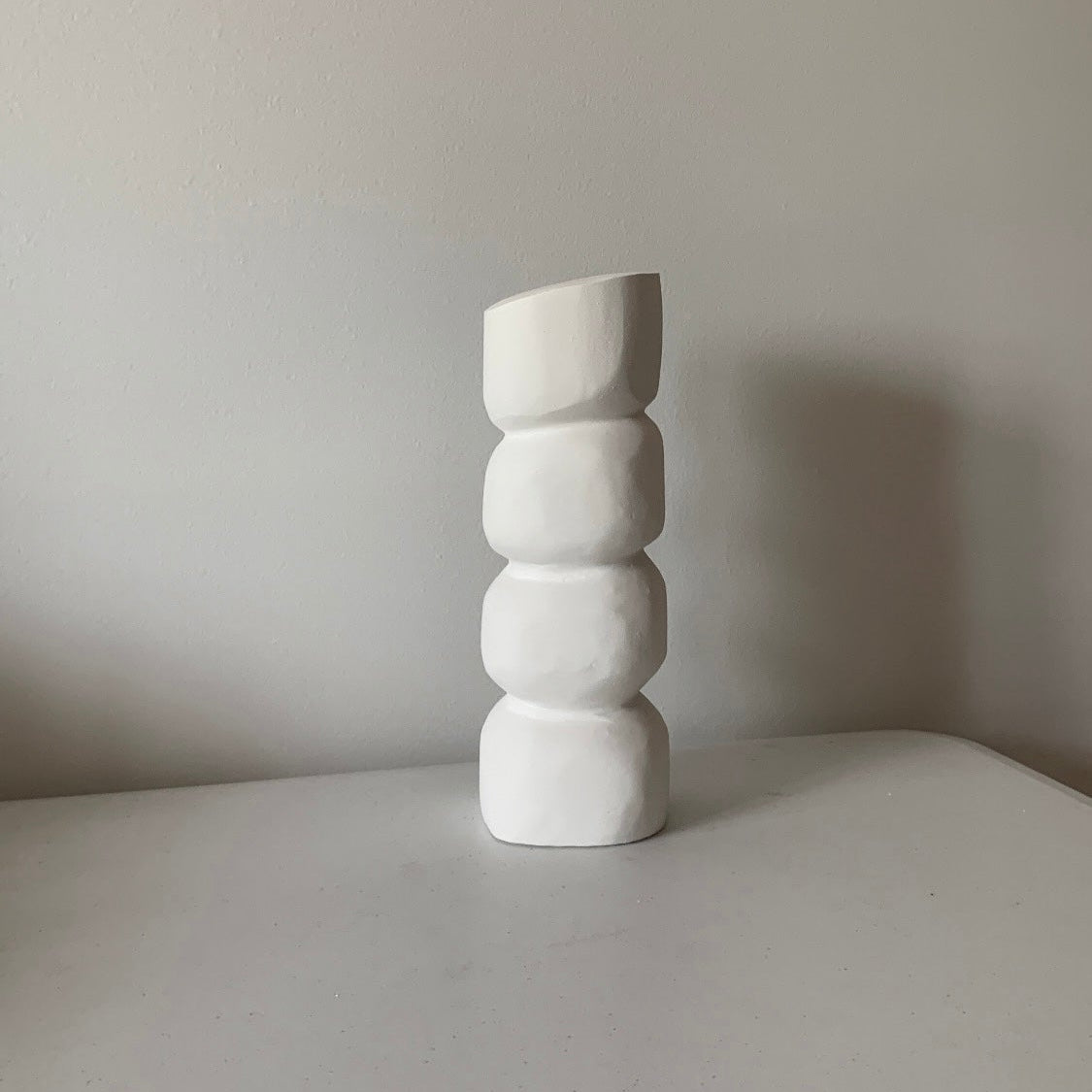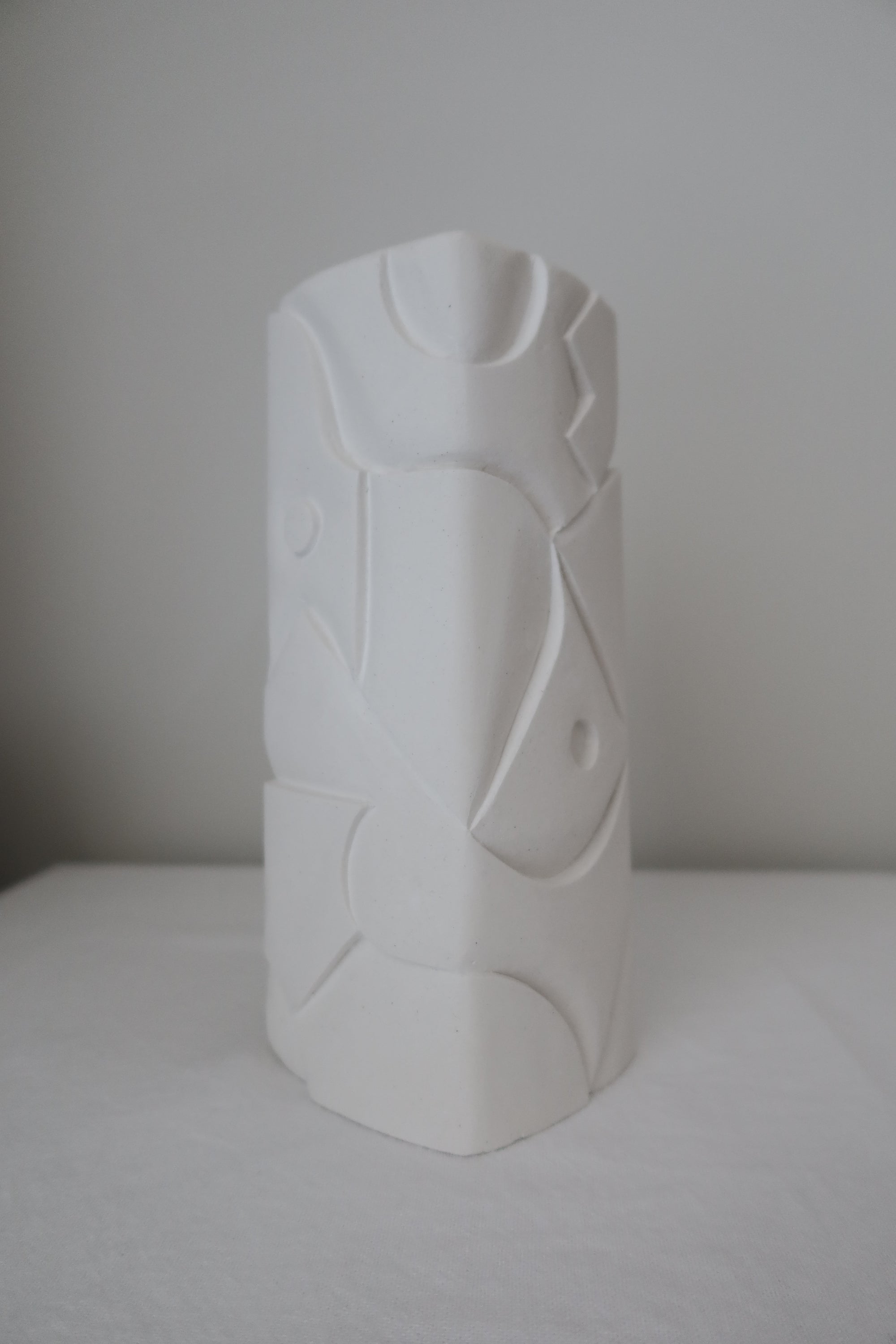 Marie Petridis explores form, balance, and repetition through minimalist, geometric sculptures. Working primarily with plaster of Paris, Marie Petridis' marble-like sculptural forms are reminiscent of Ancient Greek art and a connection to her heritage.